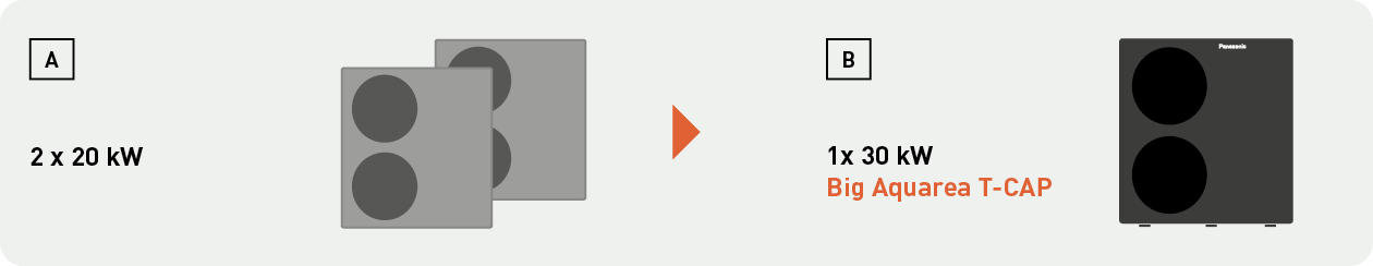 Dok druge dizalice topline smanjuju kapacitet grijanja jer vanjska temperatura pada i treba biti prevelika da bi se osigurao potreban kapacitet na vrlo niskim temperaturama, Big Aquarea T-CAP M serija održava nazivni kapacitet na izlazu za vodu od 55 °C sve do -15 °C bez rezervnog grijača.inbsp;