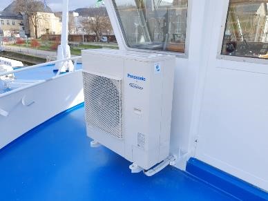 Mit dem Direktverdampfersystem von Panasonic konnte zudem erheblich Gewicht eingespart werden im Vergleich zu den sonst üblichen wassergeführten Systemen. Ein ECOiMini-VRF-Außengerät wiegt lediglich 150 kg und die beiden PACi-Geräte bringen jeweils nur 100 kg auf die Waage. Dazu im Vergleich: Wasser gekühlte Klimasysteme wie sie normalerweise in den Rumpf solcher Schiffe eingebaut werden liegen zwischen 2 bis 3 t. Das niedrigere Gewicht wirkt sich natürlich auch auf die Betriebskosten sprich die Antriebskosten für das Schiff aus.