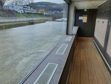 Die Kondensatleitungen mussten zudem in den Schiffsrumpf geführt werden, wo sich das Kondensatwasser in einer speziell angefertigten Edelstahlwanne sammelt und von einer Tauchpumpe in den Fluss befördert wird. Auch hier brachte die Installation auf einem Schiff Besonderheiten mit sich: Aufgrund der Schiffsschwankungen war es erforderlich, die Wände der Kondensatwanne entsprechend hoch zu fertigen.