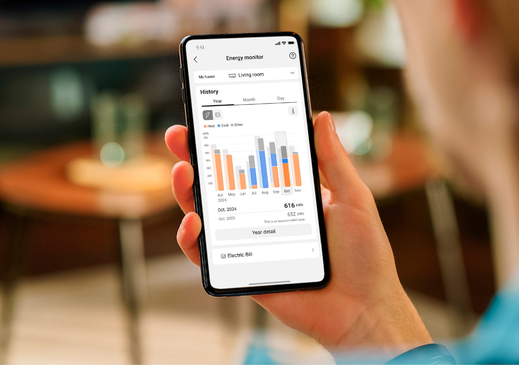 Das neue Energieverbrauchsdiagramm mit den Betriebsdaten für Heizung und Kühlung über einen Zeitraum von bis zu zwei Jahren erlaubt aufschlussreiche Vergleiche und fundierte Entscheidungen hinsichtlich des Energieverbrauchs. Die Nutzer erhalten eine Übersicht über ihren aktuellen Energieverbrauch. So lassen sich Einsparpotenziale erkennen und Kosten reduzieren. Zudem können Anwender ihre Stromtarife selbst eingeben, um eine bessere Kostenabschätzung für die Zukunft zu erhalten.