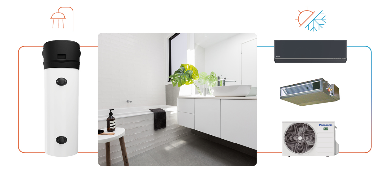 La bomba de calor Panasonic Aquarea ACS, combinada con una bomba de calor aire-aire (individual o multidivisión), ofrece una solución completa y energéticamente eficiente diseñada para mantener su hogar cómodo durante todo el año.