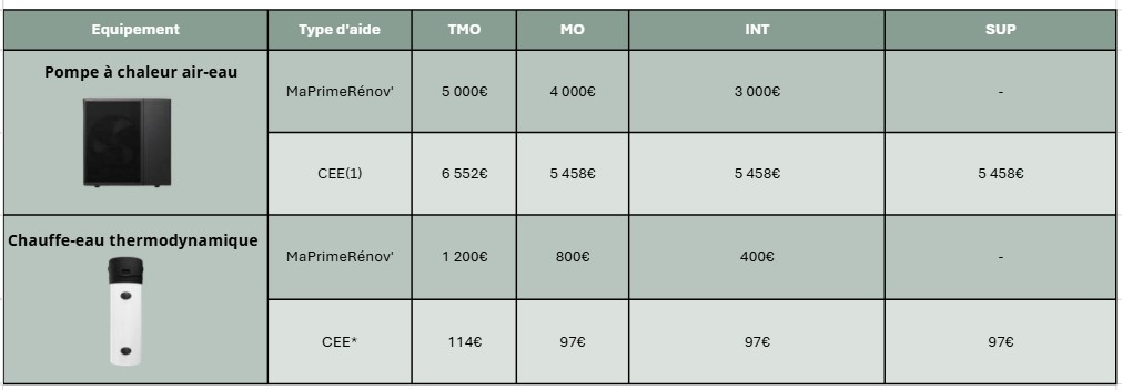 Montant des primes MaPrimeRénov' et CEE pour installer une pompe à chaleur