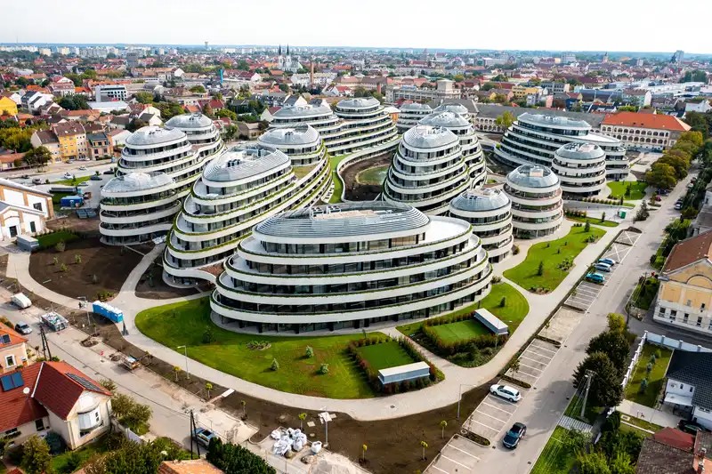 szolgáltató funkciók mellett lakások is helyet kaptak. A befektetők részéről is elvárás volt az elérhető legmodernebb és legzöldebb technológia választása. Szempont volt a rendszerek tetőn való elhelyezésének lehetősége, a kompakt kialakítás.