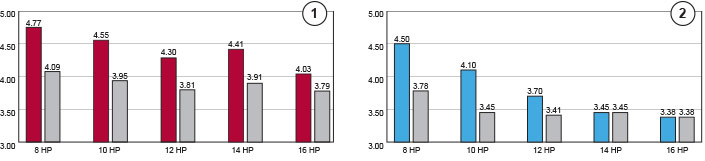 Coefficiente di rendimento COP (a pieno carico) al Top del mercato, efficienza standard.