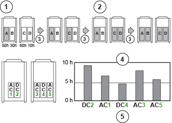 Nell’esempio soprastante, l’attivazione dei compressori avviene nel seguente ordine: 4 / 2 / 3 / 1 / 5