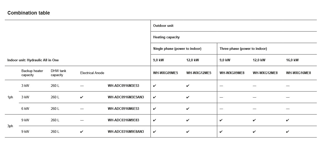 | Indoor unit 9kW electric heater | — | — | WH-ADC0316M9E83 | WH-ADC0316M9E83 | ||