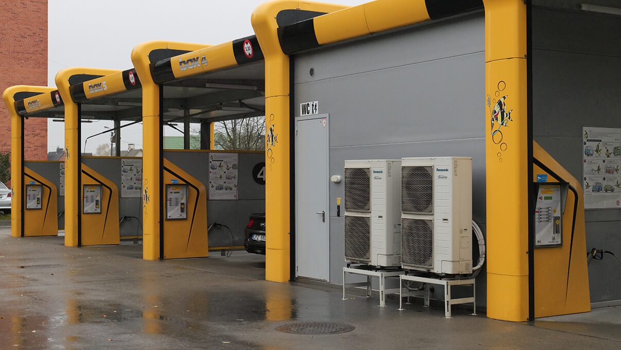 „Panasonic“ oras-vanduo šilumos siurbliai buvo sumontuoti automobilių savitarnos plovyklose, lengvai atpažįstamose dėl jų geltonos spalvos, šiuose miestuose: