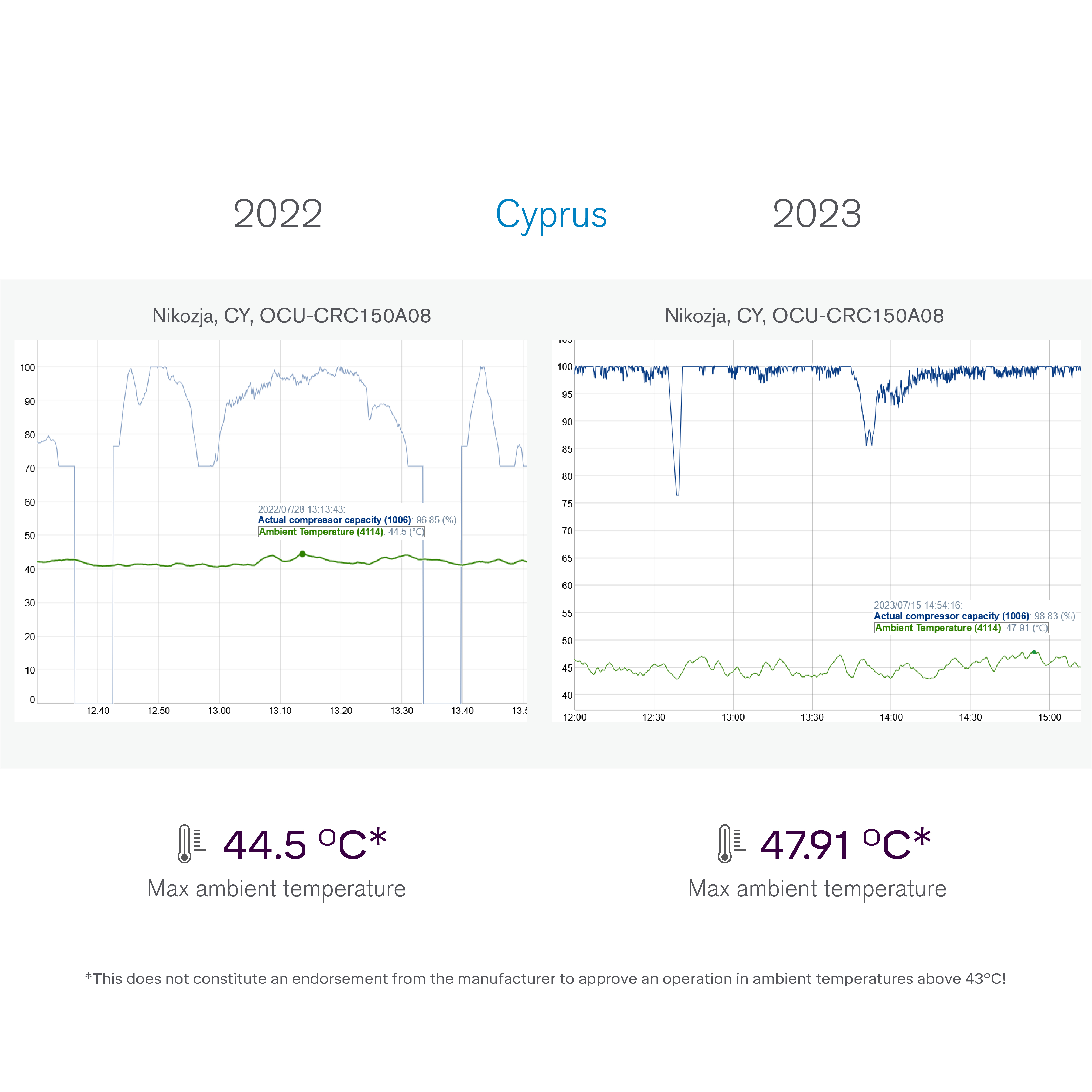 The discharge temperature for R744 quickly reaches over 100°C. It brings excellent potential for heat reclaim in retail systems, which can be used for central heating or obtaining domestic hot water.