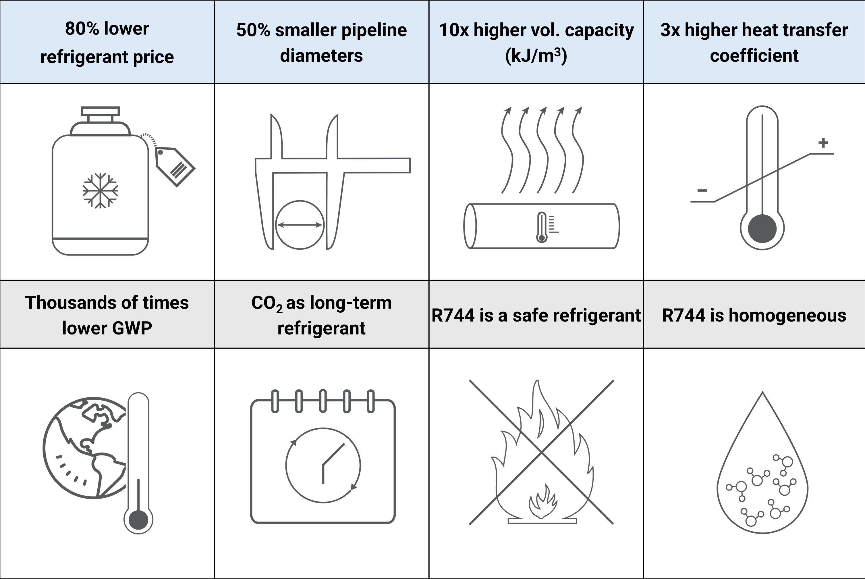 Several R744 myths require clarifying. Despite many claims that law restrictions forcing sustainable solutions are the only serious reason for switching to CO₂, this natural substance is characterized by several unique thermodynamical and functional features, allowing energy-efficient cooling and significantly benefiting its users and final customers.